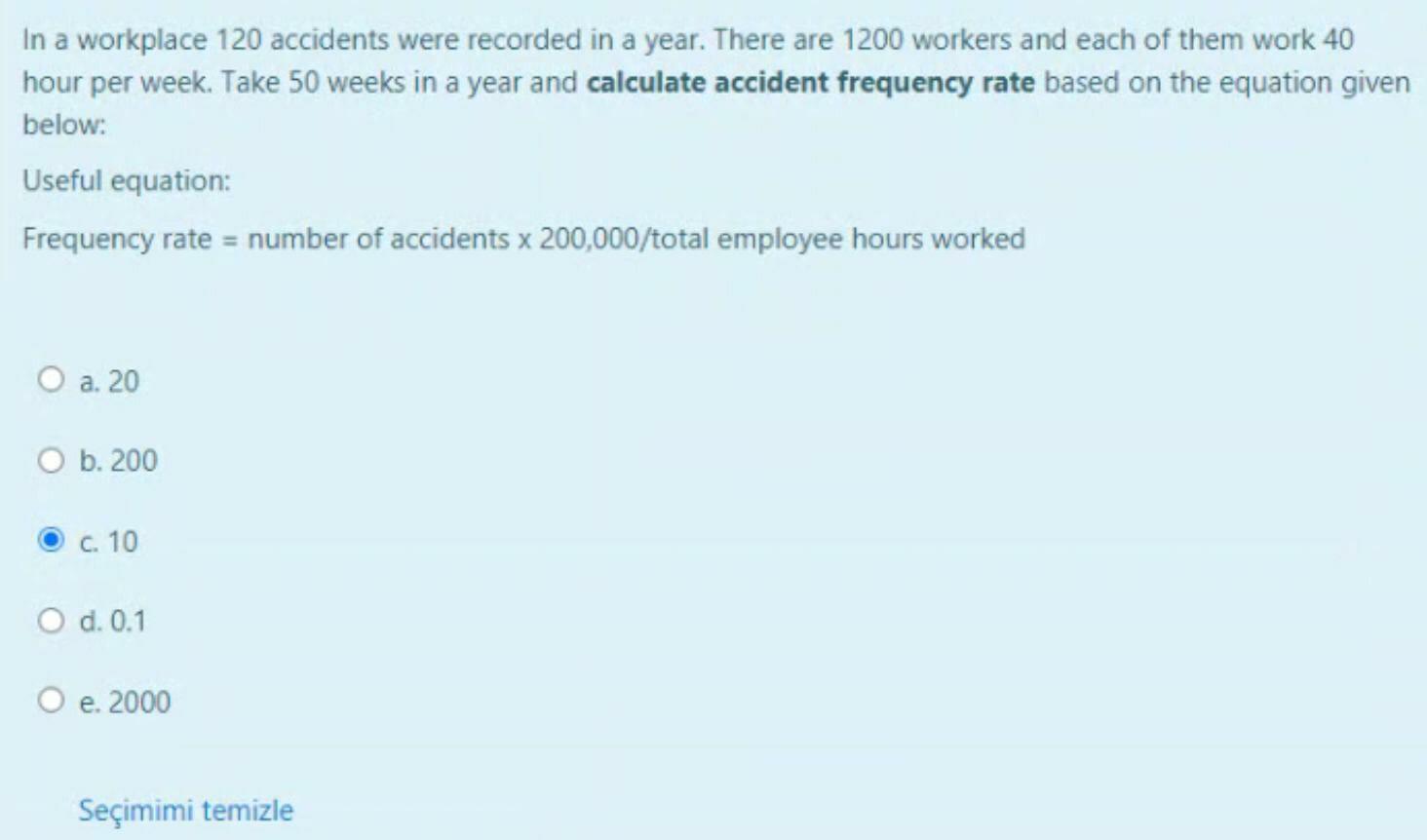A simple formula for calculating accident incidence (frequency) is to: Incidence rates of nonfatal occupational injuries and illnesses by industry and case types, 2019; Further, the number of workdays lost is computed based on 300 work days per year. The lti within a given time frame, and the amount of hours worked in that time frame. Multiply the number of accidents per a working hour by 1,000,000 to calculate the accident frequency rate per 1,000,000 hours.